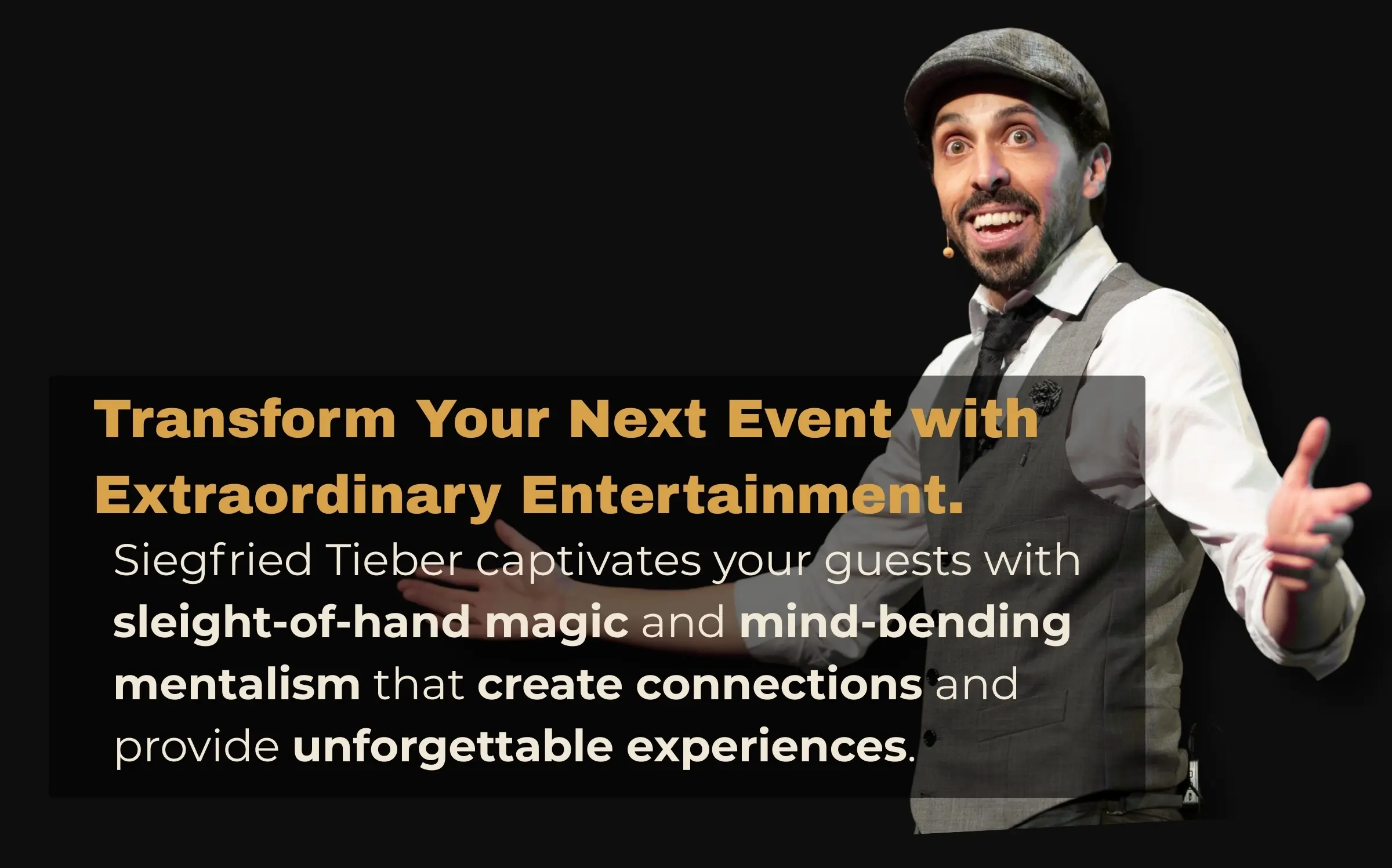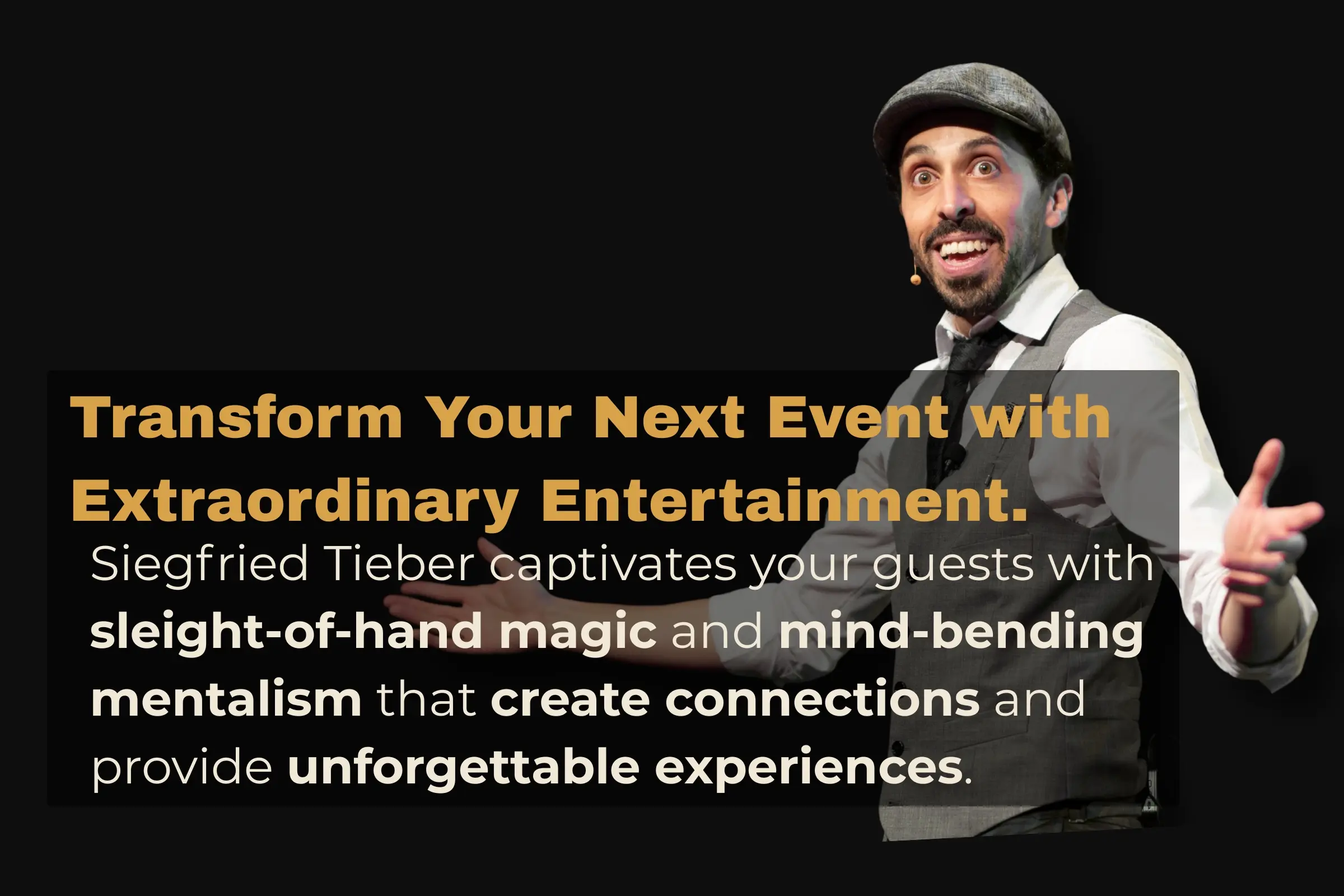 With over 15 years of experience performing for high-profile corporations and sophisticated audiences around the world, Siegfried Tieber blends sleight-of-hand, psychology, and humor to create moments of astonishment and awe.